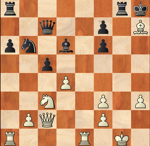 21.Kh1? (21.Bxg8 – Rxg8+ 22.Kf1 - cd 23.Qd2 threatening Qh6 mate - Rg6 24․Qxd4 + -) Subsequently, Whites lost their advantage resulting in an almost equal endgame. After move 38 made by Whites the following situation was obtained: