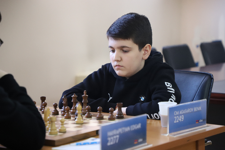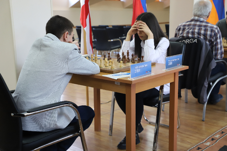 With white pieces, GM Sturua Zurab, the current leader of the tournament, defeated IM Davit Shahinyan.