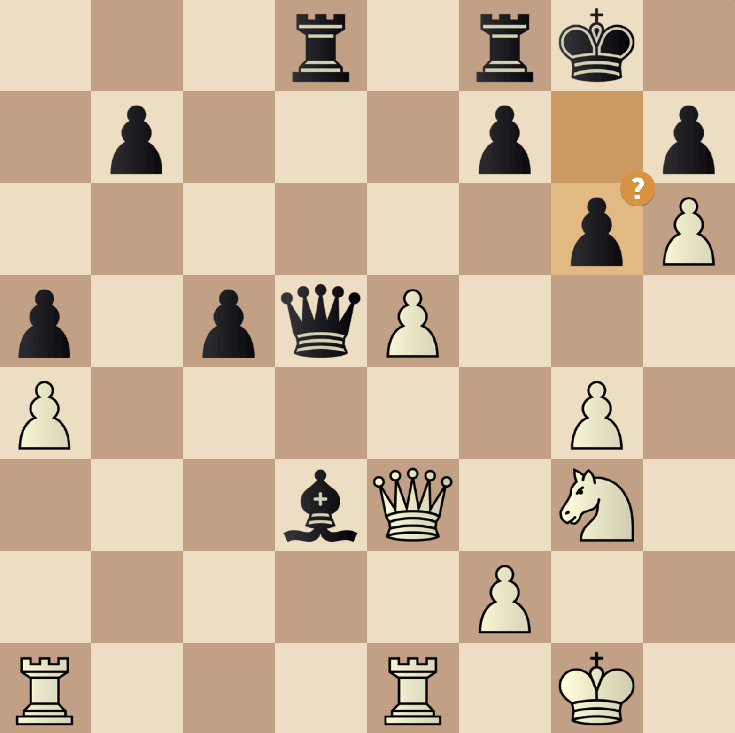 But after the suicidal 32...g6? Polina, with only 9 minutes left, failed to find the typical move 32.Nh5! (the knight is untouchable due to a checkmate in two moves) 32...Qc6 33.Nf6+ Kh8 34.Rad1 c4 35.Rd2, and White, dominating the space, could almost effortlessly increase the pressure, competing for a win.