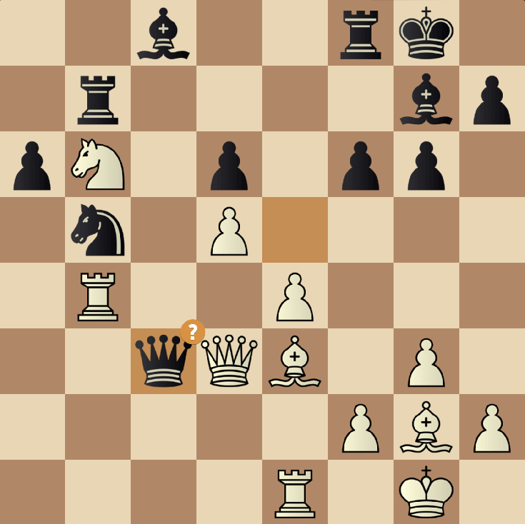 That's where Davtyan confused her with a series of subtle moves: 15.Ng4! Nxg4 16.Qxg4 g6 17.Qh3. After this, it turned out that black couldn't simply defend the e4 pawn. In the case of 17...f5 there follows 18.f3! exf3 19.Nxf3, and around the king, there are too many weak squares – white pieces immediately swarm around the king. In case of 17...Nc6, as Shuvalova played, simply 18.Bxe4! Nxd4 19.Bxb7, and White has a healthy extra pawn.